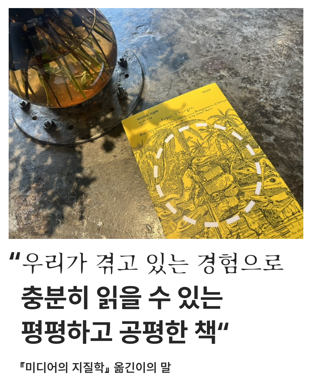 『미디어의 지질학』 옮긴이의 말 일부를 옮깁니다. 미디어+지질학이라는 낯선 제목과 달리, “우리가 겪고 있는 경험으로 충분히 읽을 수 있는 평평하고 공평한 책“이라는 말이 마음에 남습니다.