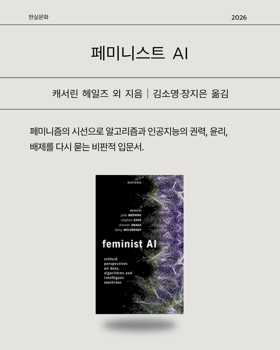 <페미니즘 AI>는 페미니즘의 시선으로 알고리즘과 인공지능의 권력, 윤리, 배제를 다시 묻는 비판적 입문서입니다. 다양한 학문 분야의 저명한 페미니스트 사상가들을 한데 모아 인공지능(AI)과 관련 데이터 기반 기술이 인간 사회에 미치는 영향을 탐구하는 최초의 저서입니다. |